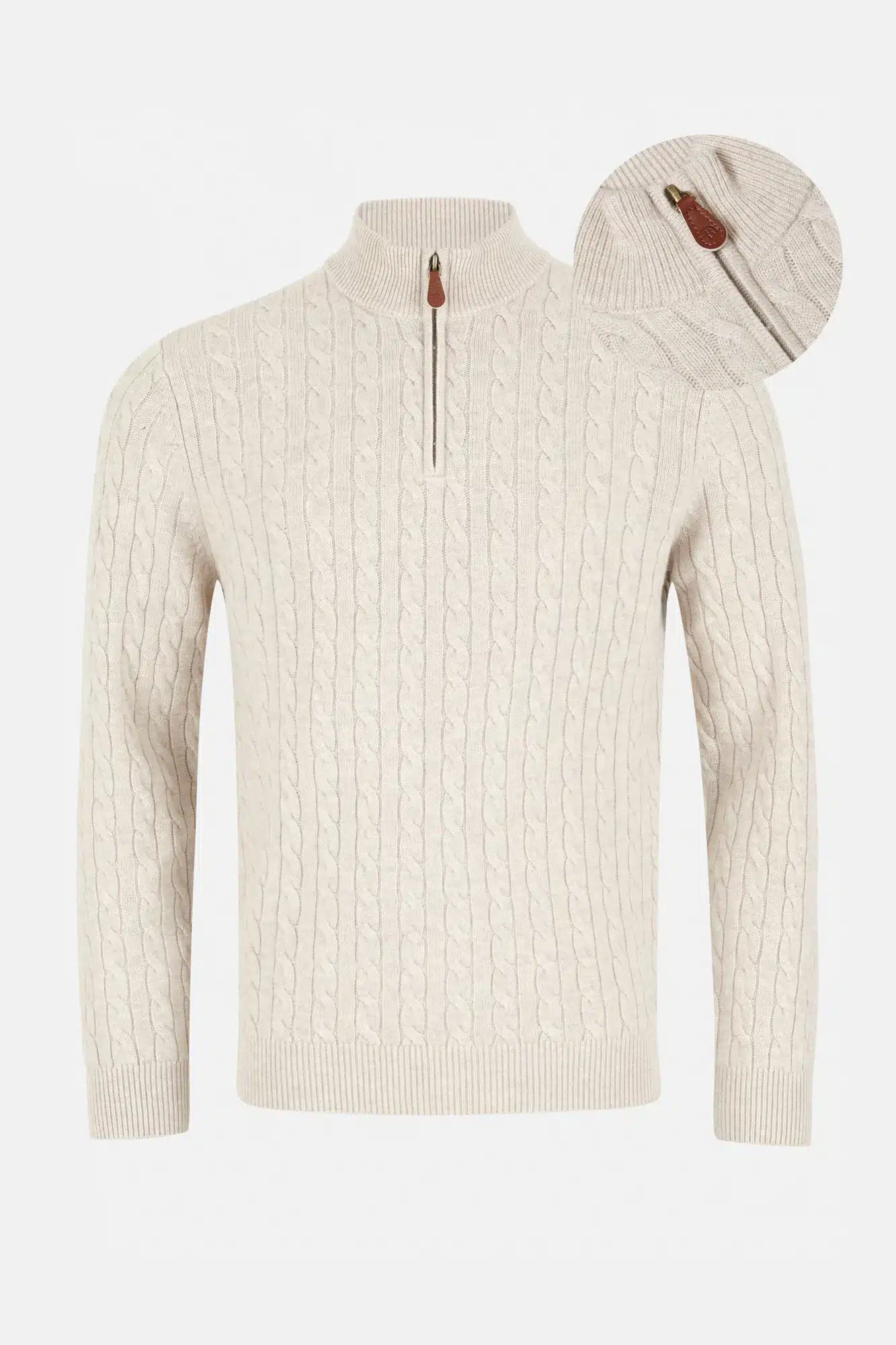 The new Benetti Cable Knit arrives as a timeless wardrobe staple, crafted with a modern half-zip finish and detailed cable texture. Designed for both comfort and versatility, this seasonal essential is available to suit every style.