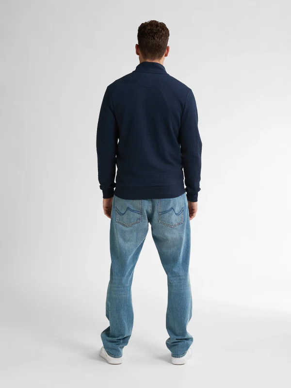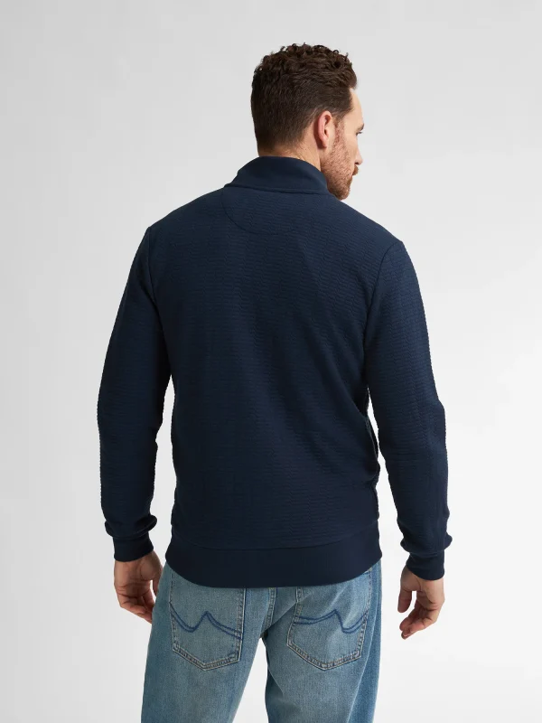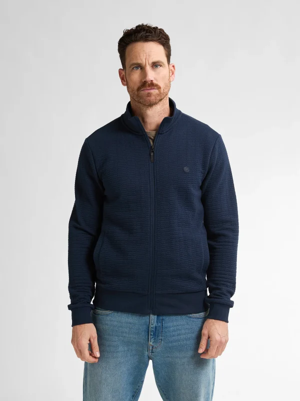 Casual cardigan with classic stand-up collar and zipper closure. This vest features a logo on the chest, side pockets on the hips and rib-knit trim.