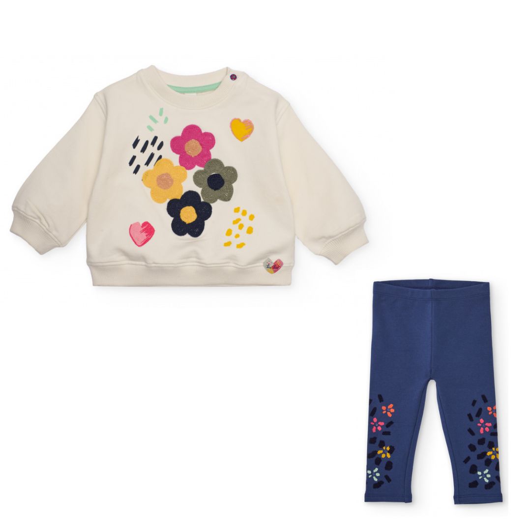 Tuc Tuc Girls’ cream sweatshirt with flower and heart print & leggings set