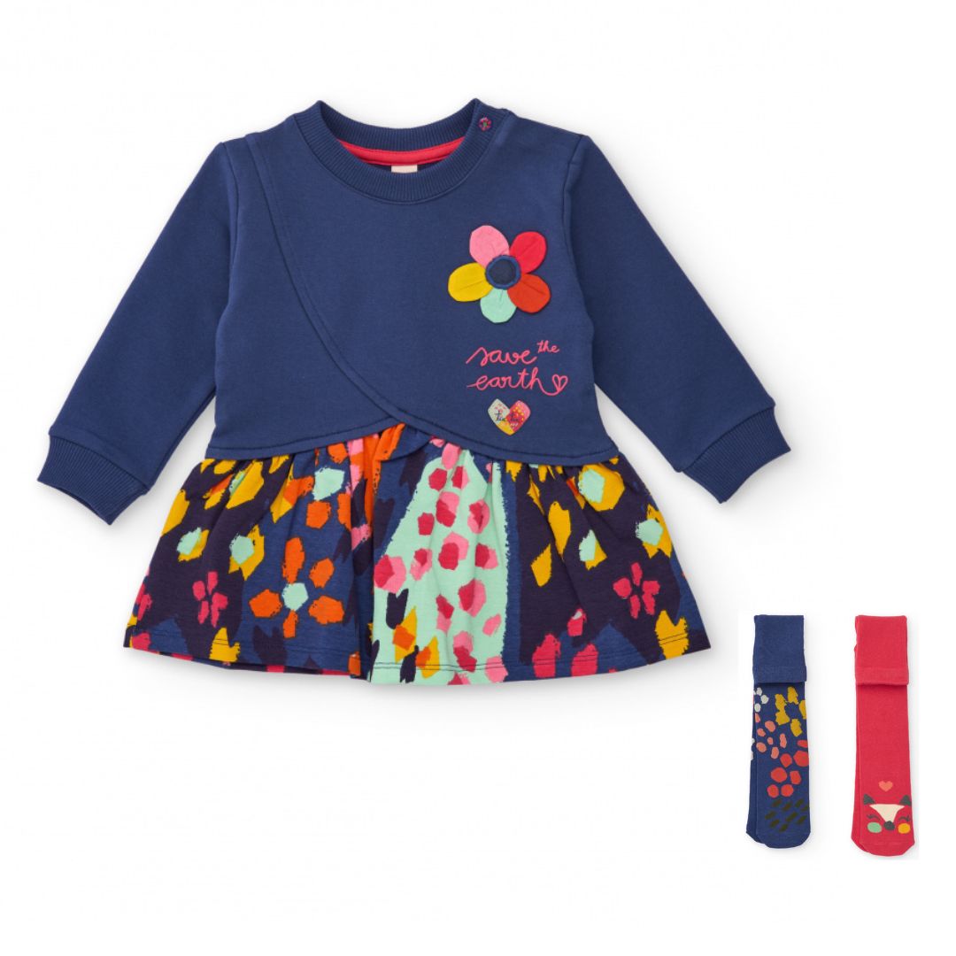 Tuc Tuc Girls’ navy blue knit dress and printed skirt +2 pack Tights