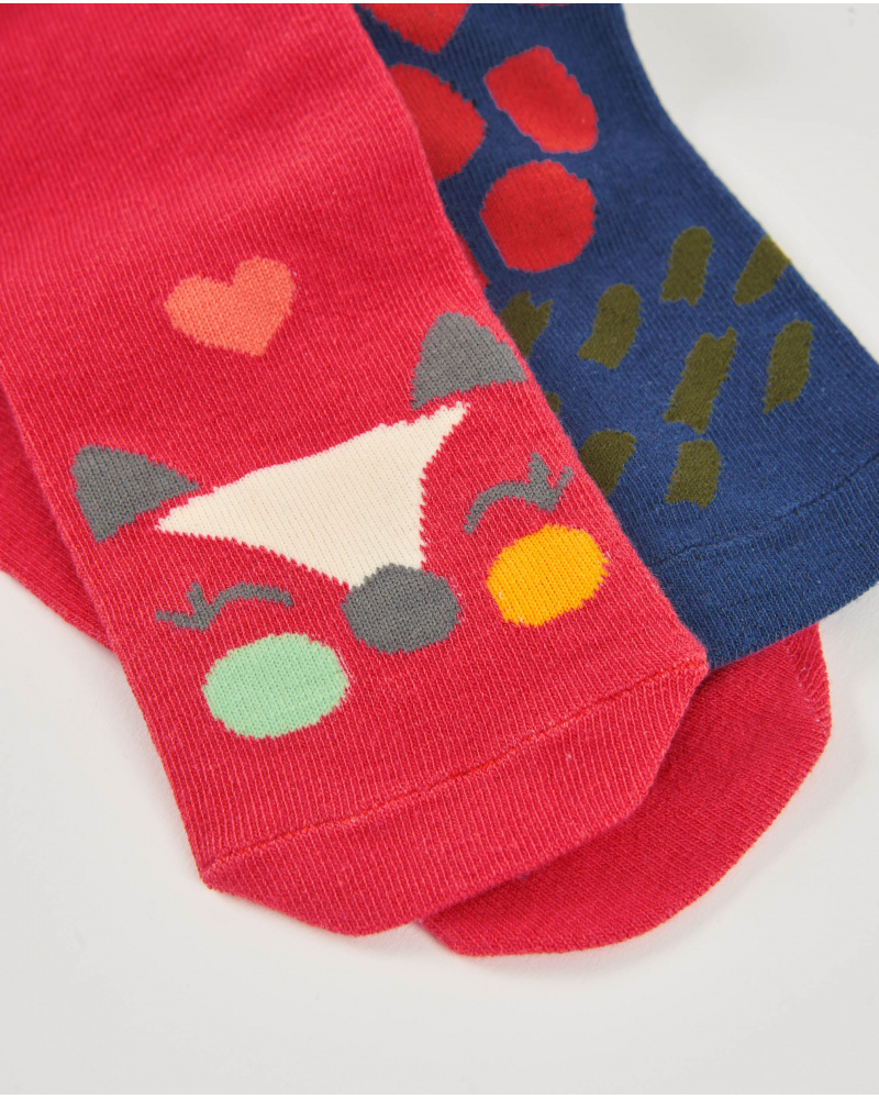 Pack of two baby girls’ tights in coral and navy blue. Featuring a graphic animal design with a heart and a multicolored abstract print. Stretchy and comfortable fabric, ideal for everyday looks.